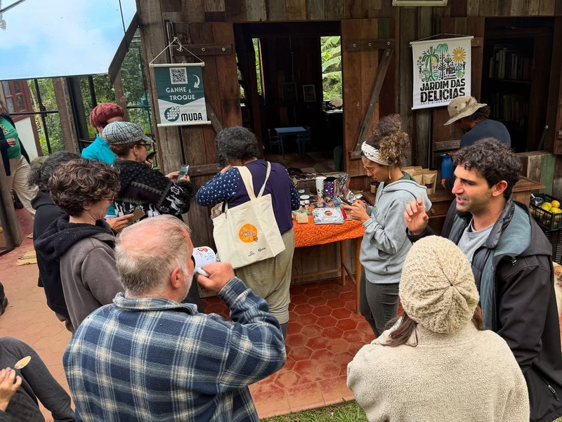 After all the agroecological and artistic activities, we opened our Muda stand to showcase the abundance of our network! During this time, we exchanged ideas, shared products from our platform, had a coffee, and chatted about social currencies, technologies, and our confluences. The participants were onboarded to our platform and rewarded with our social currency for their support in our planting effort.